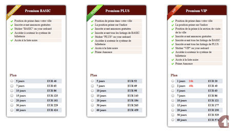 Beaucouo d’escorts payent le site pour leur sécurité. En effet, sur Sexemodel, lorsque tu es inscrites en tant qu’escort, tu as la possibilité de payer (ou non) sous différents types d’abonnement. Payer, notamment, te permet d’avoir accès à une liste noire des clients dangereux. Cette liste est remplie et mis à jour directement par les prostituées dans un soucis de sécurité.