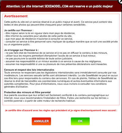 En date du 18 janvier 2024, Sexemodel a été en parti banni en France par l’État Français ! Comme coco.gg, il n’aura pas passer l’année 2024 (sauf que coco chat a ressorti un nouveau site Bounty Chat)