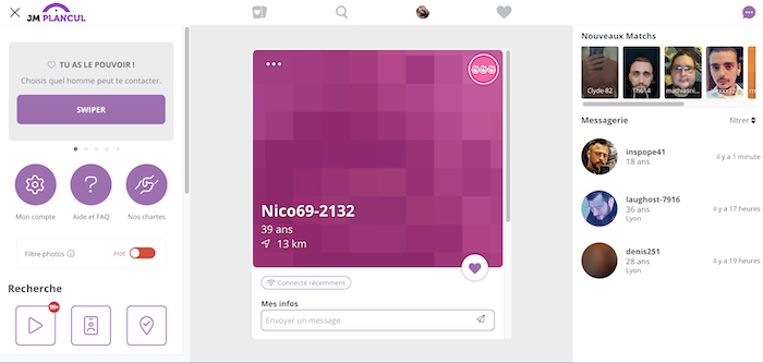 Le point positif c’est que tout est très rapide et sécurisé. Tu n’as accès à rien tant que tu ne t’es pas inscris et que tu n’as pas validé ton adresse mail et ton numéro de téléphone. JM Plan Cul devient de plus en plus sécurisé et c’est top !Le design a lui aussi été bien amélioré et c’est beaucoup plus sympa pour naviguer dessus et trouver des conquêtes.