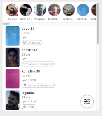 L’une des options qui me plait aussi beaucoup c’est le “snap”. Rien à voir avec snapchat (enfin un peu quand même), c’est l’option qui te permet de mettre une story. Un peu comme sur les réseaux, tu peux mettre une photo en temps réel qui s’effacera après un temps donné. Du coup plus tu es actif sur la plateforme, plus tu as de chance de faire des rencontres coquines.
