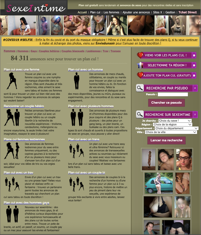 Il y a deux types de fonctionnalités sur le site de plan cul Sexe Intime, la première est la fonction annonce, la deuxième est la fonction chat :