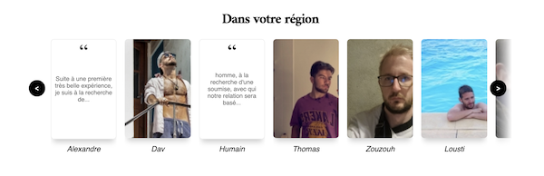 La deuxième c’est l’intégration du test BDSM du site bdsmtest.org directement dans ton profil. Il te suffit de passer le test sur leur site (la plateforme Tendre Chéri te redirige directement dessus) et de copier coller les résultats dans ton profil. Ils sont directement mis en forme et ça te permet de reconnaitre facilement les profils qui pourraient matcher avec toi.